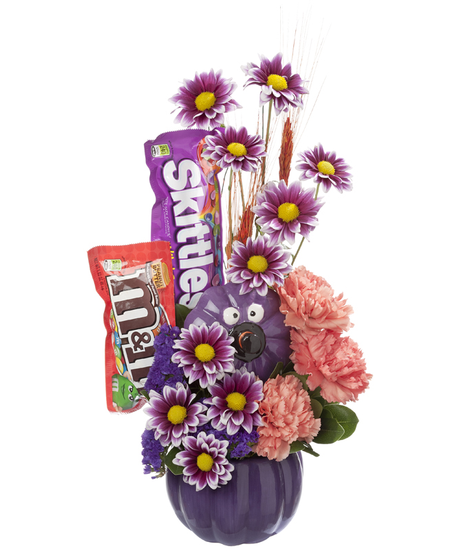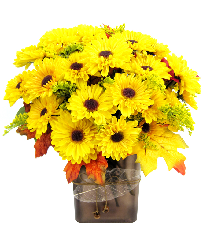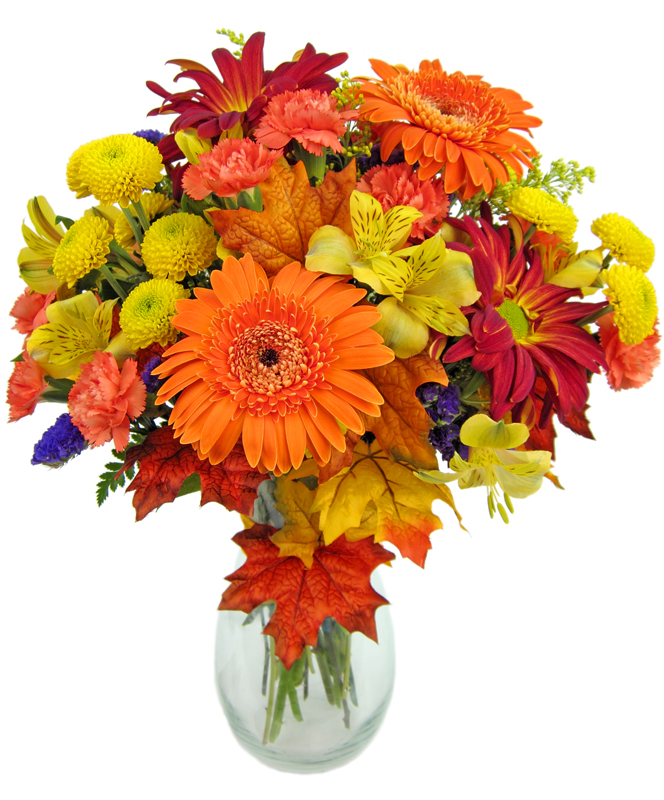 After a long, hot, dry Summer, Fall is certainly a welcome sight. The showrooms are decorated for Fall, with cool Halloween displays, Autumn silks and wreaths, and pretty blooming mums. All the things so familiar to us with the change of seasons. There are lots of new products to choose from and terrific reasons to send flowers to someone special to you. Remember Boss’ Day is October 16th and Sweetest Day is October 20th. Here’s a small preview for you: