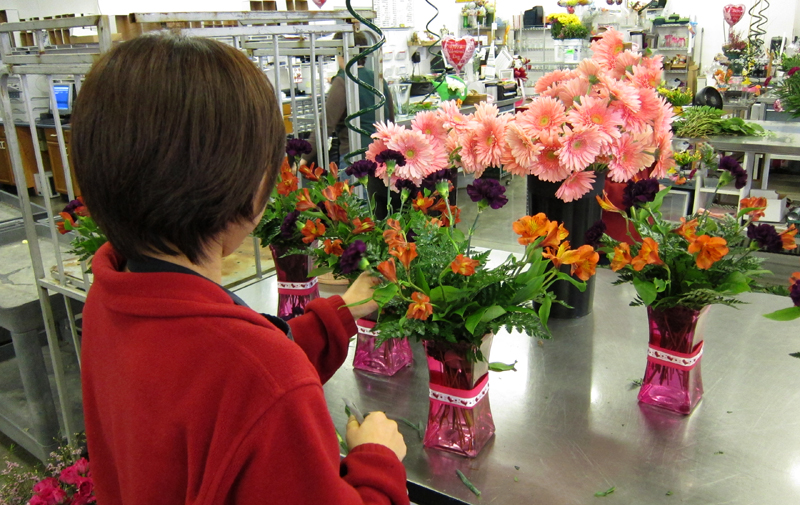 Here are some recent shots of a few of Zeidler’s talented floral designers hard at work. Valentine’s Day is a fast paced, fun and busy time at a flower shop. Sometimes these folks are a bit camera shy, so please note some designers are not included this time around.
