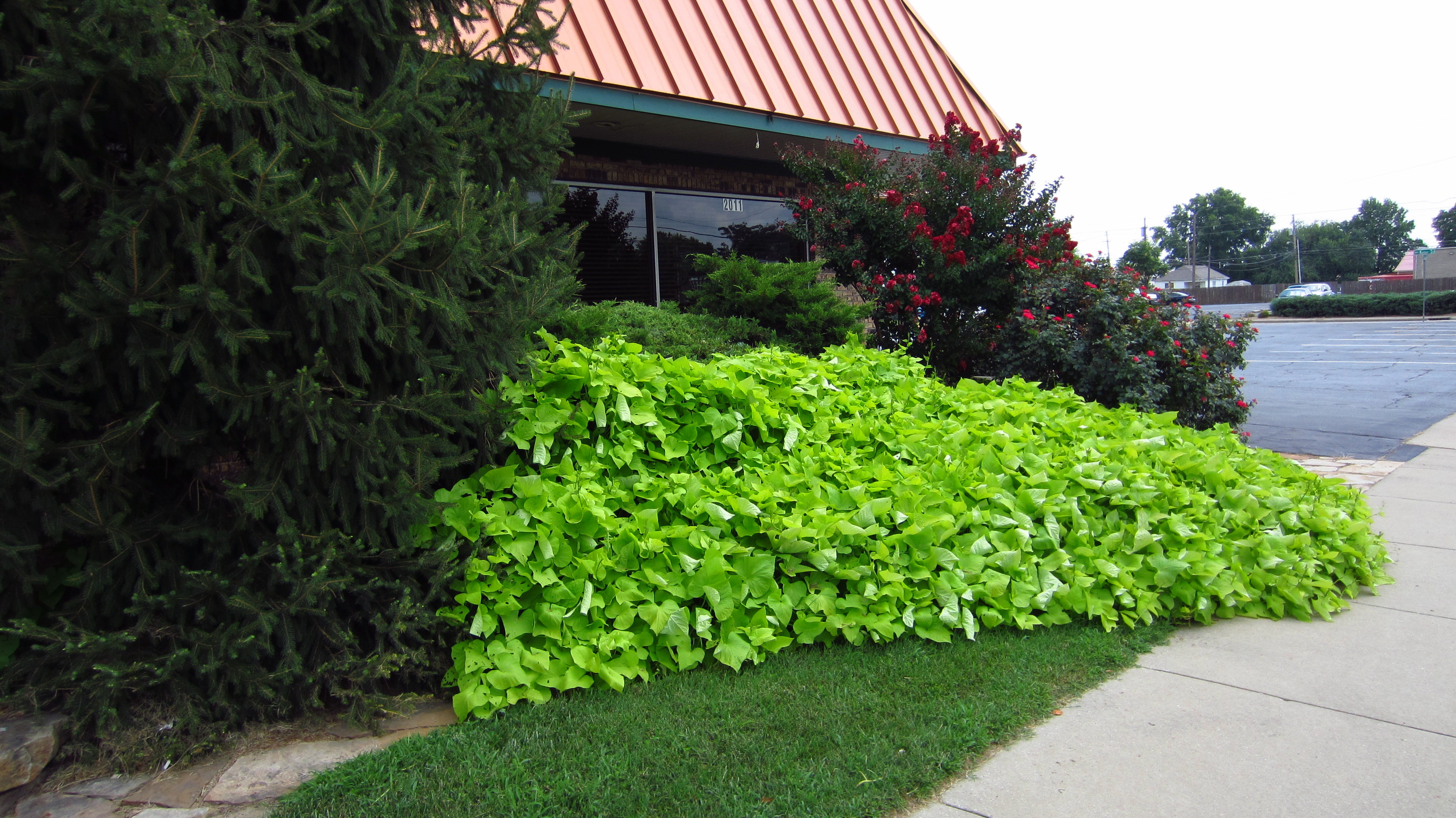From year to year, we like to try new and different things in the landscaping in front of the Zeidler’s Fulton Avenue Store. I would say this one is a success, wouldn’t you? This “Sweet Potato Vine” is from the Convolvulaceae family, the Ipomoea genus, and batatas species. Now if you understand all that, you are way ahead of the gardening game! You will find these plants for sale in the Spring in Zeidler’s Plant Center. Anyway, it’s healthy, hardy, gorgeous green, and making every effort to take over the sidewalk.