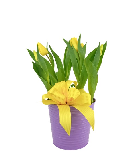 A blooming plant nestled in a matching decorative tin and finished with a perfectly coordinated bow. Will make a charming and cheerful gift. The vibrant flowers bring a touch of natural beauty, while the stylish tin and ribbon add a polished, festive look. Simple yet elegant, this sweet arrangement is perfect for brightening someone’s day or celebrating a special moment.