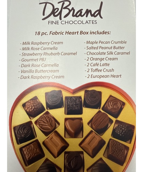 De Brand fine chocolate 18pc heart box.